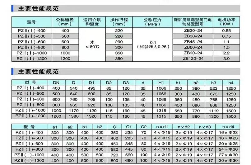 PZ手動配水閘閥是在原PZ1型的基礎上進行了改良設計;PZII型是在改良設計的基礎上增加礦用閥門電動裝置,來滿足煤礦水泵房無人值班,全自動化生產的需求。具有結構簡單、密封性能好、清污方便、操作靈活、省力等特點,主要應用于井下泵房吸水井的配水之用。配水閘閥也可稱為配水閘門,是的啟閉件是閘板,閘板的運動方向與流體方向相垂直,閘閥只能作全開和全關 , 不能作調節和節流。閘板有兩個密封面 , 常用的模式閘板閥的兩個密封面形成楔形、楔形角隨閥門參數而異 , 通常為 50, 介質溫度不高時為 。楔式閘閥的閘板可以做成一個整 體,叫做剛性閘板;也可以做成能產生微量變形的閘板 , 以改善其工藝性 , 彌補密封面角度在加工過程中產生的偏差 , 這種閘板叫做彈性閘板。